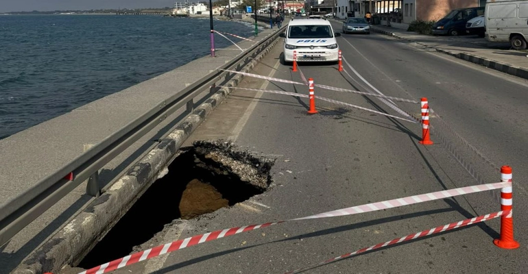 Gemikonağı sahil yolunda çökme